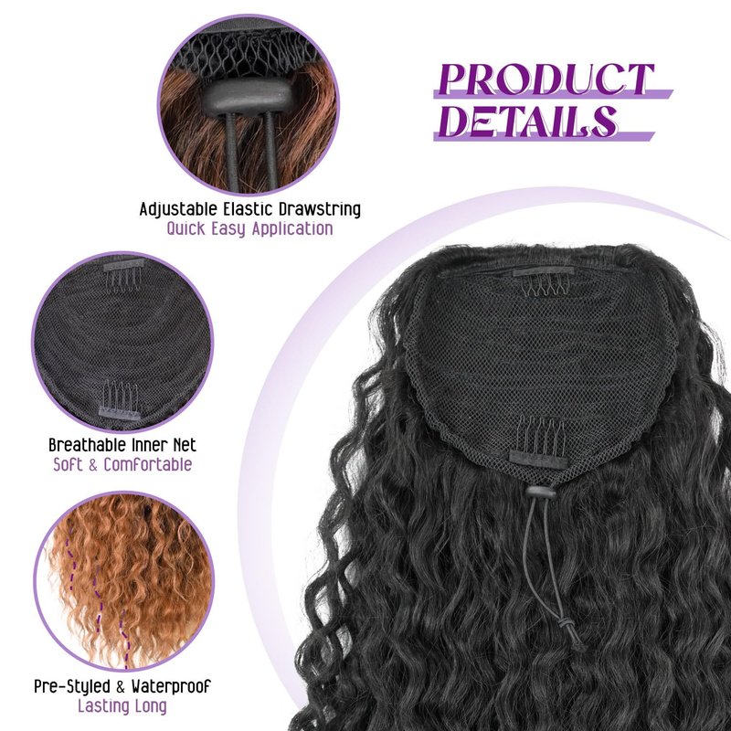 - Easy-to-Wear and Beginner-Friendly: Our curly ponytail extension is ultra beginner-friendly and easy to wear. The breathable inner net and invisible comb make it lightweight and secure, while the drawstring hair type allows you to achieve a new style in seconds, saving you time and stress.