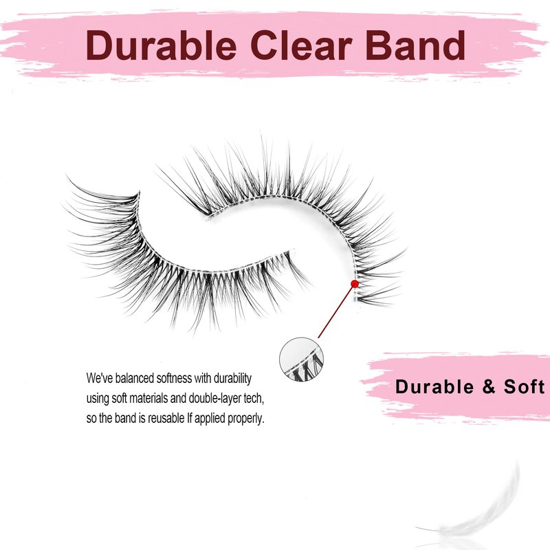 - Clear Band for Repeated Use: Our invisible band not only blends seamlessly with your lash line but also ensures that you can reuse these lashes multiple times.
