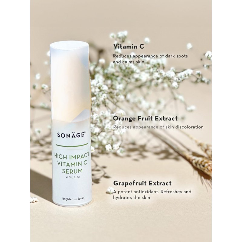 Sonage High Impact Vitamin C Serum: With Hyaluronic Acid | Brightens, Hydrates, Fades Dark Spots and Corrects Skin Tone
