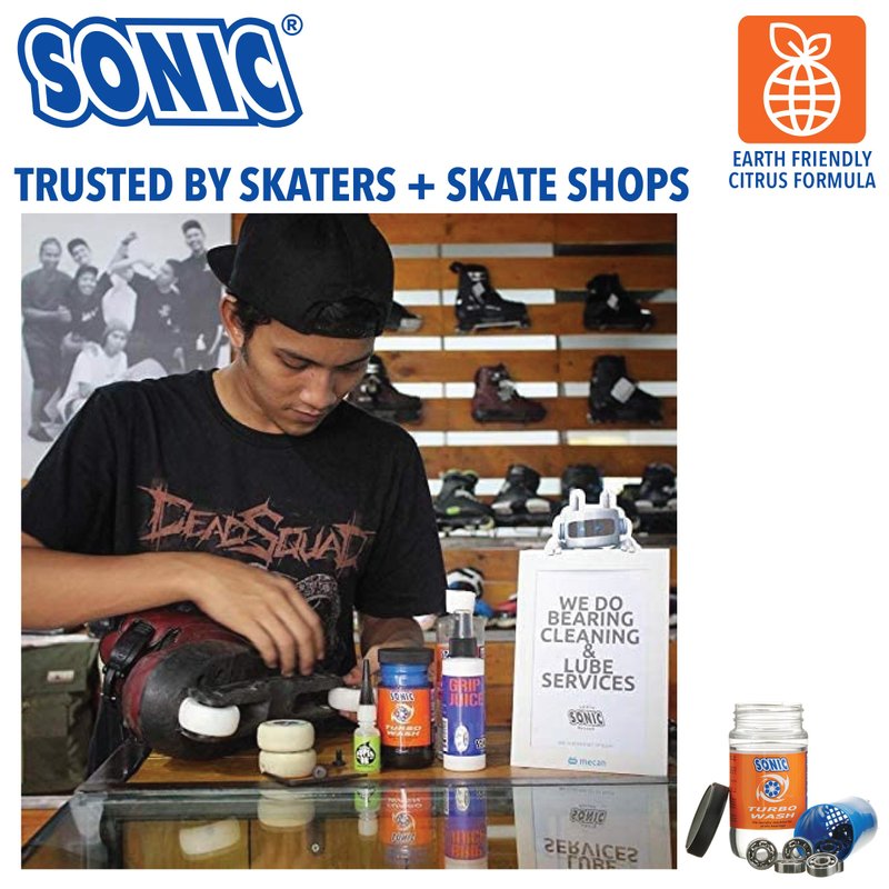 SONIC Turbo Wash, Complete Skate Bearing Cleaning Kit Includes 8 oz Citrus Cleaner, Inline Skates, Roller Skates, Skateboards, Patented, Made in USA