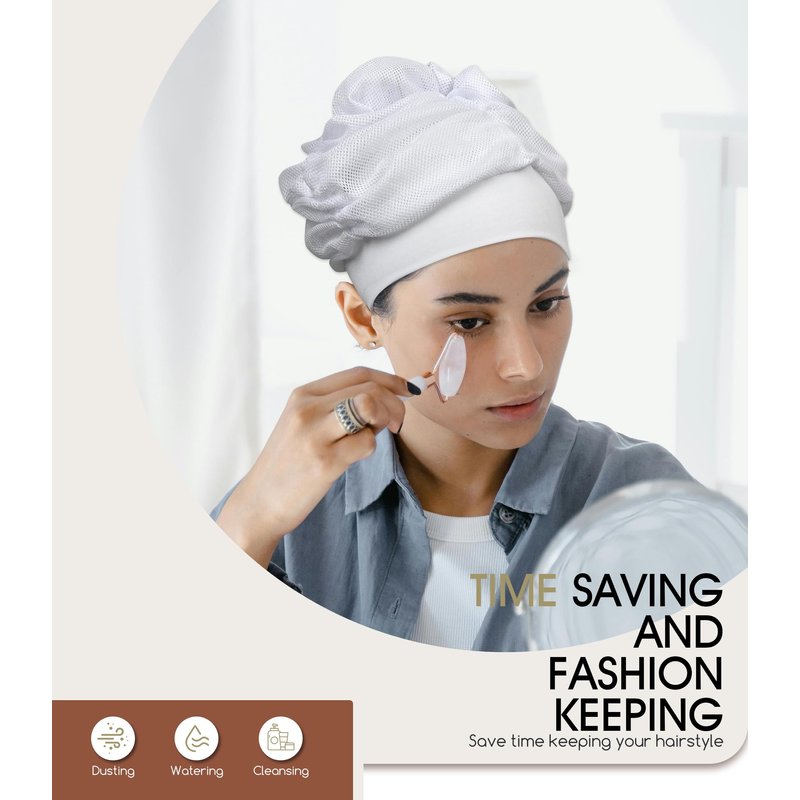Sonnorel 4 Pack Hair Dryer Net plopping Bonnet for Curly Hair, Net Plopping Cap for Drying Curly Hair, Protective Mesh Quick Drying with Adjustable Strap Reusable Washable (White)