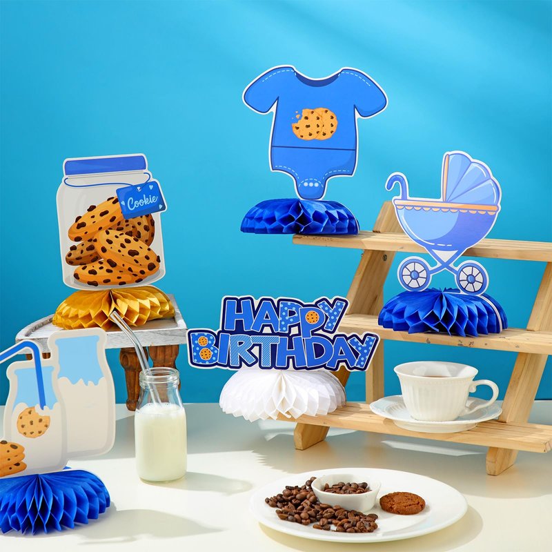 Sonwyoung 12 Pcs Milk and Cookies 1st Birthday Party Decorations Milk and Cookie Table Decor Baby Shower Happy Birthday Honeycomb Centerpieces Table Decorations for 1st Birthday Party Supplies