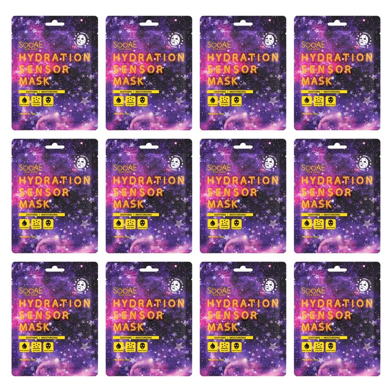 Soo'AE Hydration Sensor Hydrating Face Masks 12 Count - Moisturizing, Soothing, Smart Color Change facial mask skincare sheet masks for face Korean face mask Cica, Madecassoside, Hyaluronic Acid