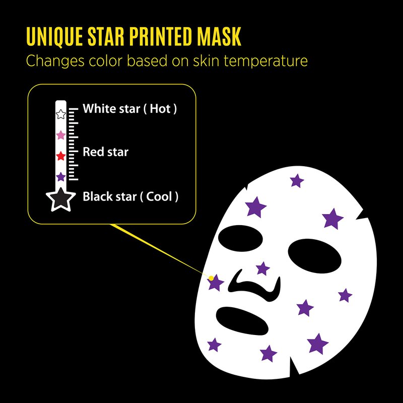 - COLOR-CHANGING: Unique Smart Star on the sheet changes its color based on skin temperature, making it a unique and fun addition to your skincare routine. Smart Star indicating sheet mask Helps to indicate where skin is losing hydration due to excess heat and tells you when your skin is at its optimal temperature for hydration