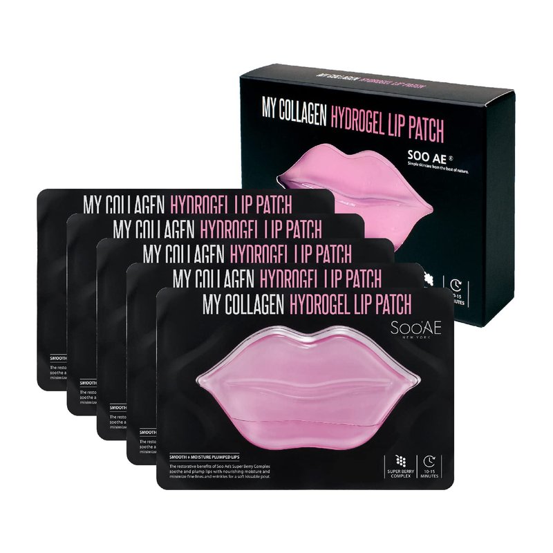 Soo'ae My Collagen Hydrogel Lip Patch - 5 Pcs True Real Collagen Patch for Lips Anti-Oxidant berry extracts Firming Cute Fun Lip Mask Great Before Make-Up Moisturizing Soo Ae Sooae Made In Korea