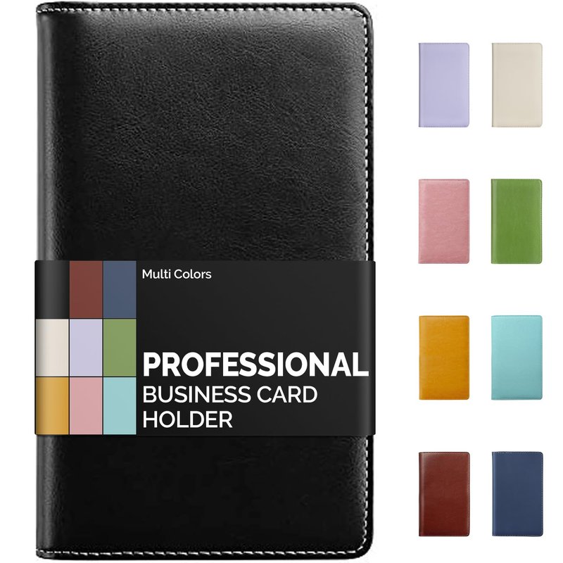 - Large capacity business card storage: This book-style business card organizer can hold up to 240 business cards, two cards back-to-back in each pouch. It is very compact & professional. Enough capacity for your different cards: business cards, credit card, social security, gift cards, insurance cards, name cards, personal IDs, mini photos, and more