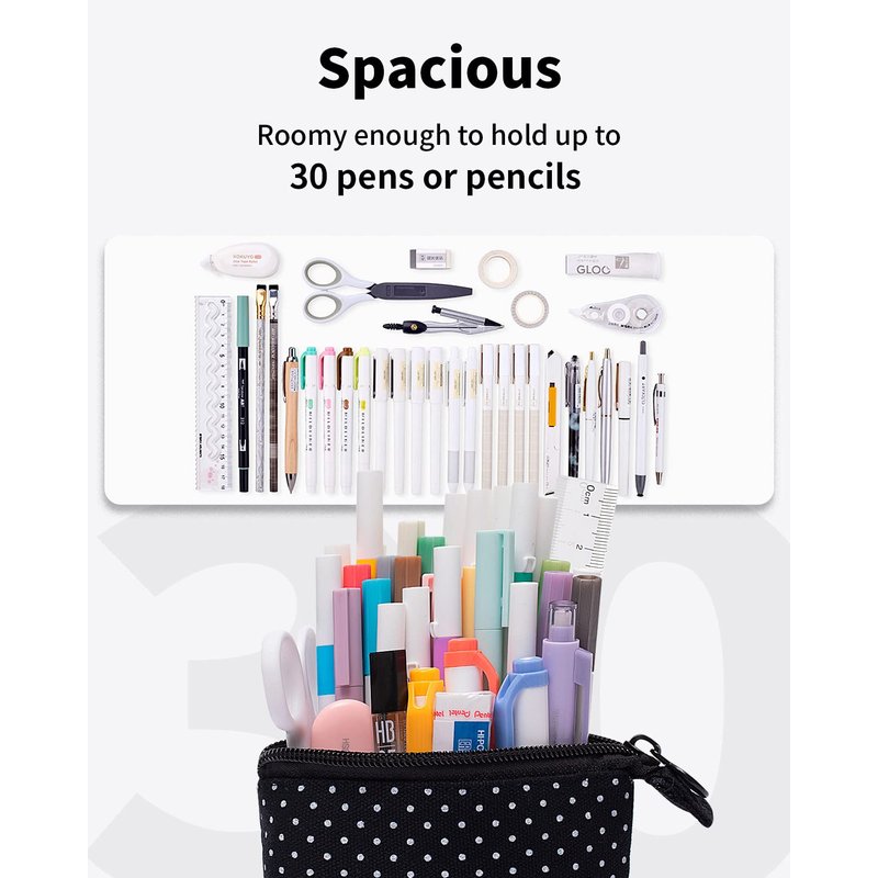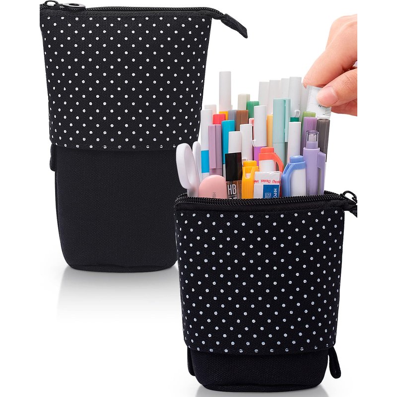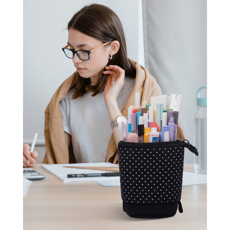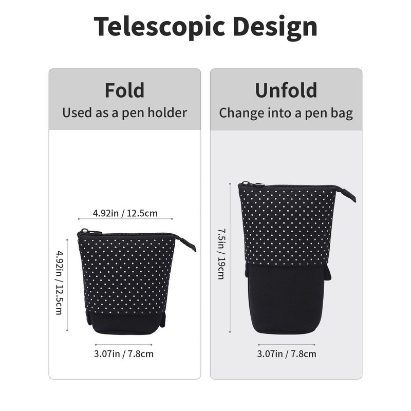 - Telescopic Design for Easy Access - Pull the top down with handles on both sides. It stands upright like a pen holder so you can easily grab what you need without digging through the bag. Slide up to transform it into a portable bag, then packing your pens won't be a hassle anymore.