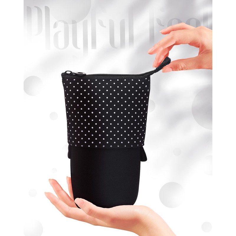 Sooez Pop Up Pencil Case, Cute Stand Up Durable Pen Pouch, Telescopic Kawaii Standing Spacious Pencil Pouch Portable Pencil Holder Bag for School Office (Black)