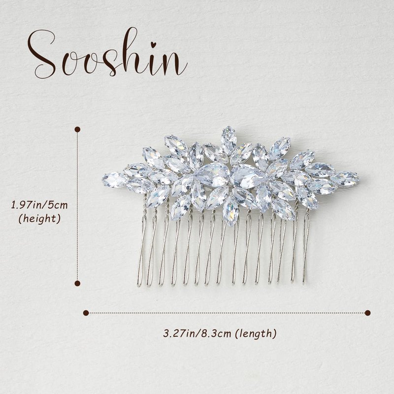 Sooshin Bridal Hair Comb Wedding Hair Accessories for Brides Crystal Wedding Headpiece for Bride and Bridesmaids Rhinestone Hair Accessory for Women and Girls