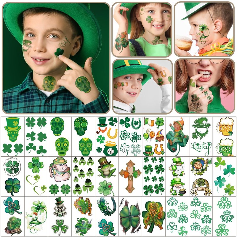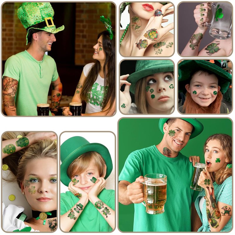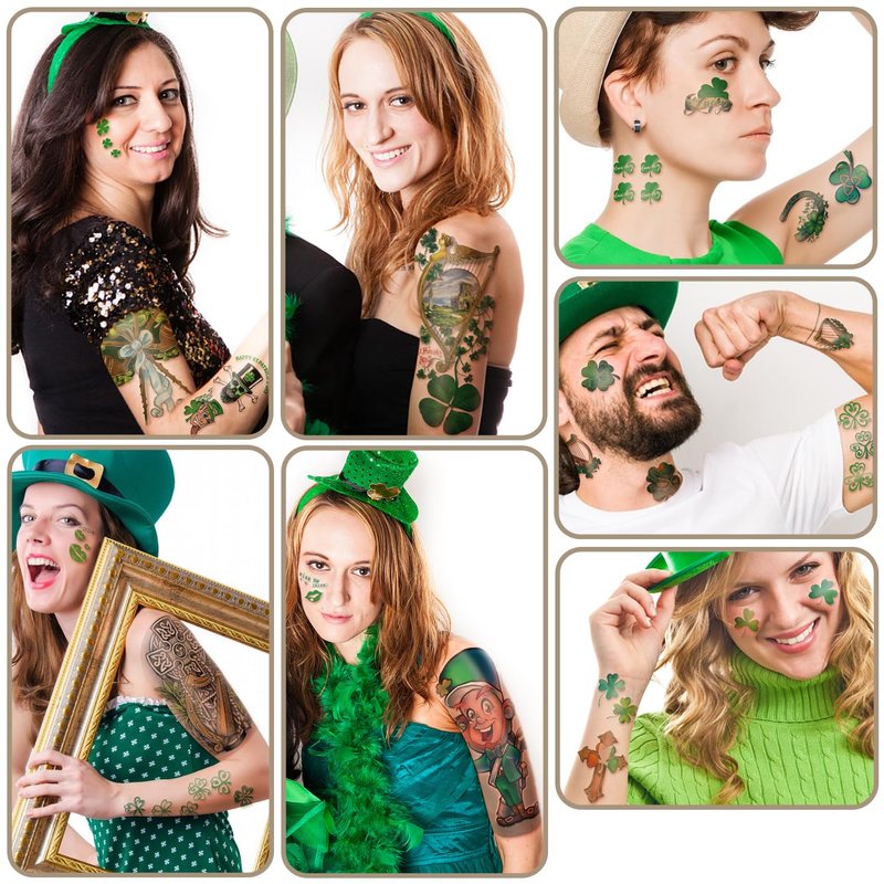 - 🍀Nice decorations for St Patricks Day:You can paste these Irish Day themed patterns on your face, hands, arms or legs, they will add bright green color to your appearance and create more happy atmosphere.