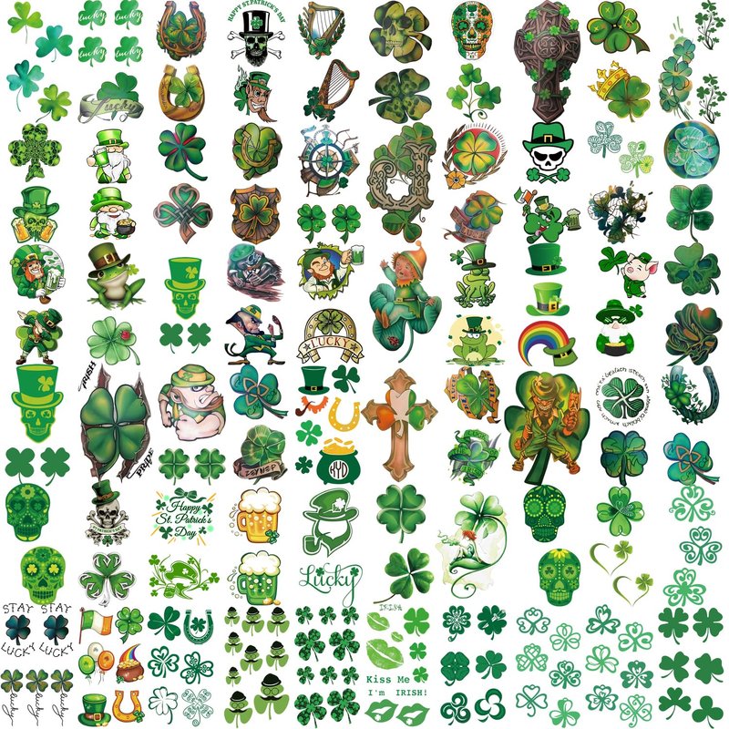 - 🍀EXTRA LARGE SIZE TEMPORARY TATTOO: Including 70 sheets temporary tattoo of St. Patrick's Day shamrock tattoos stickers, with different patterns for you to decorate your face, arms, and hands, large quantity can meet your festival decoration needs.