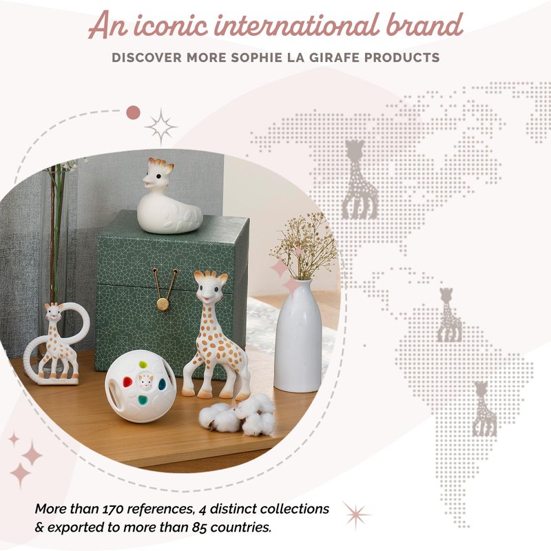 HISTORY: On May 25, 1961, the day of Saint Sophia, in the heart of Paris, a unique toy imagined by Mr. Rampeau was manufactured for the first time. This beloved toy measures 18 centimeters, has 76 dark spots, and emits a mischievous and now legendary "pouet." Its name? Sophie, of course! Since its creation, over 70 million copies of Sophie la girafe have been sold worldwide.