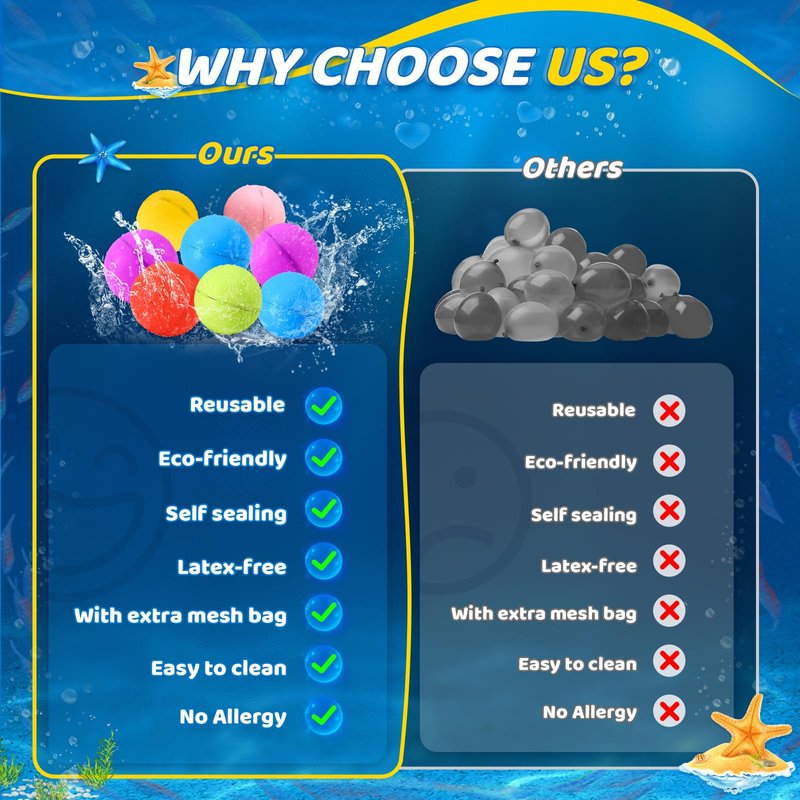 - Reusable Design: Made with soft silicone material that is durable and can be reused for multiple summer activities.