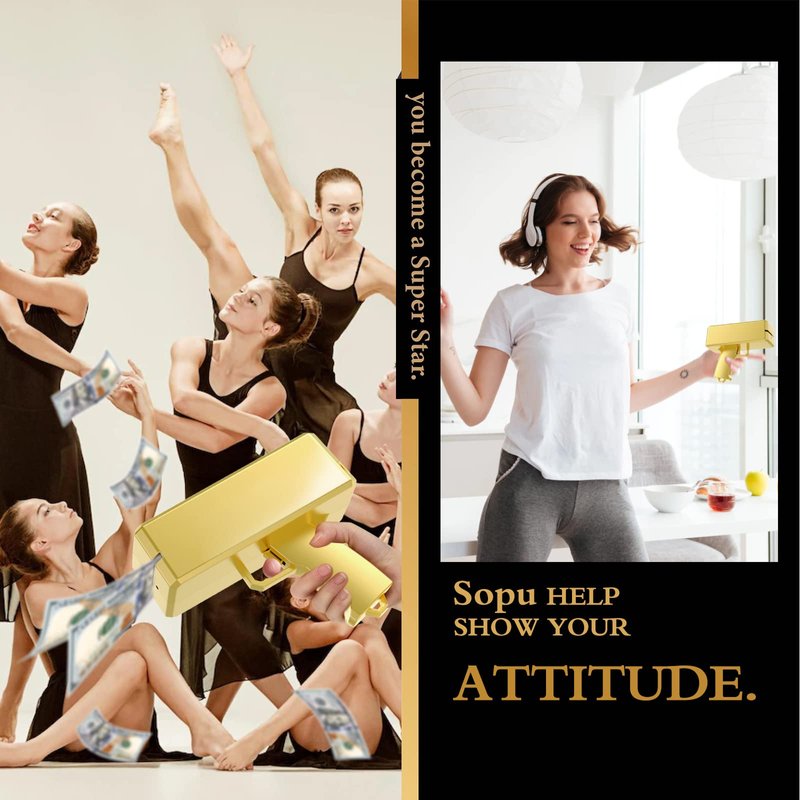 Sopu Make it Rain Money Gun Paper Playing Spary Prop Cash Gun Party Supplies (Metallic Gold)