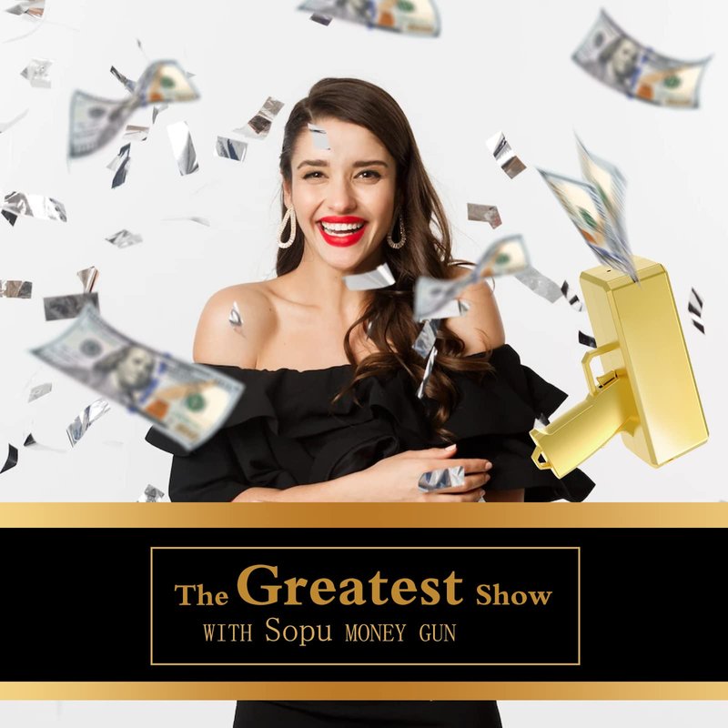 Super Cool Prop Money Gun -- Make You Feel Like A Millionaire ♦This new novelty money gun toy is popular in all world, and loved by both children and adults. The super fun ♦toy which dispenses Real Money, Play Money, Flyers etc. Very funny toy guns for boys, girls or adults during ♦parties, kids pirate games, birthday parties and by adults during weddings, nightclubs, bachelor/bachelorette ♦parties, kitty parties, team building activities, family get-together etc. Make It Rain Money ♦Don’t you know how to have fun? Put the copy money in Sopu money gun right away! Show everyone the ♦copy money, make it rain! Take time to enjoy it! Enjoy Family Time with This Play Money Gun ♦Nothing is more important than family! Today, just spend your quality time with the people closest to you. ♦Sopu will help you to create a great memory with each other. Throw an Awesome Party with Money Rain ♦With this money gun, whether your guest is adult or child, you’ll be the best host and it’ll be more fun for ♦your guests! Warm Tips ♦Please install 4 AA batteries in the battery slot.(Battery Not Included) ♦Please ensure that you always use smooth bills in Money Gun. Use of crumpled bills might jam the gun. ♦Please do not put more than 100 bills at a time. ♦The Money Gun’s door on the top isn't supposed to latch. It should be slightly lowered and touching the money. ♦Keep the angle of gun slightly pointing upwards while shooting. Fire distance Range ♦Range:The maximum range of about 2 meters, the speed of the shot is about 15 sheets per second. Package includes: 1* Sopu Money Gun Set