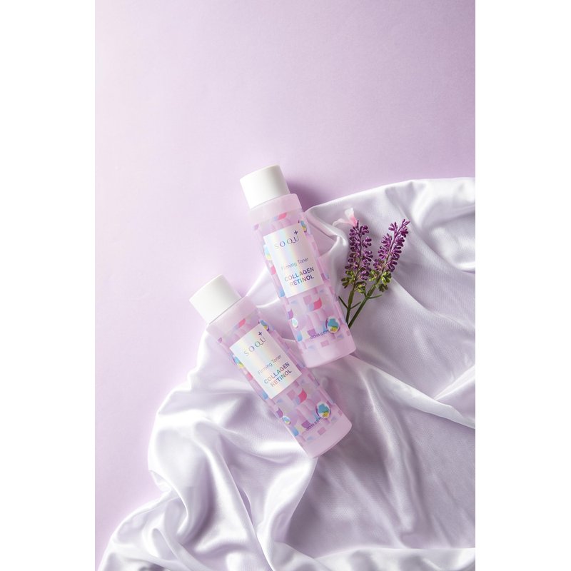 Description: SOQU Collagen Retinol Firming Toner is a refreshing facial toner designed to support skin firmness and clarity. Infused with collagen and retinol, it helps restore skin’s elasticity while improving tone and hydration. This gentle formula balances the skin after cleansing and enhances the absorption of follow-up products. Suitable for all skin types. Key Features: Advanced combination of collagen and retinol Helps improve firmness and reduce dullness Lightweight texture absorbs quickly Hydrates without leaving residue Made in Korea, perfect for daily skincare routine How to Use: After cleansing, apply an appropriate amount of toner to your face using a cotton pad or your hands. Gently pat until fully absorbed. Use morning and evening for best results.