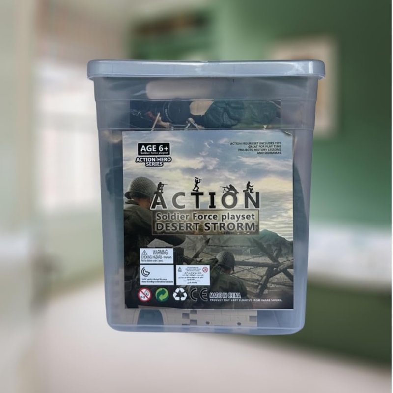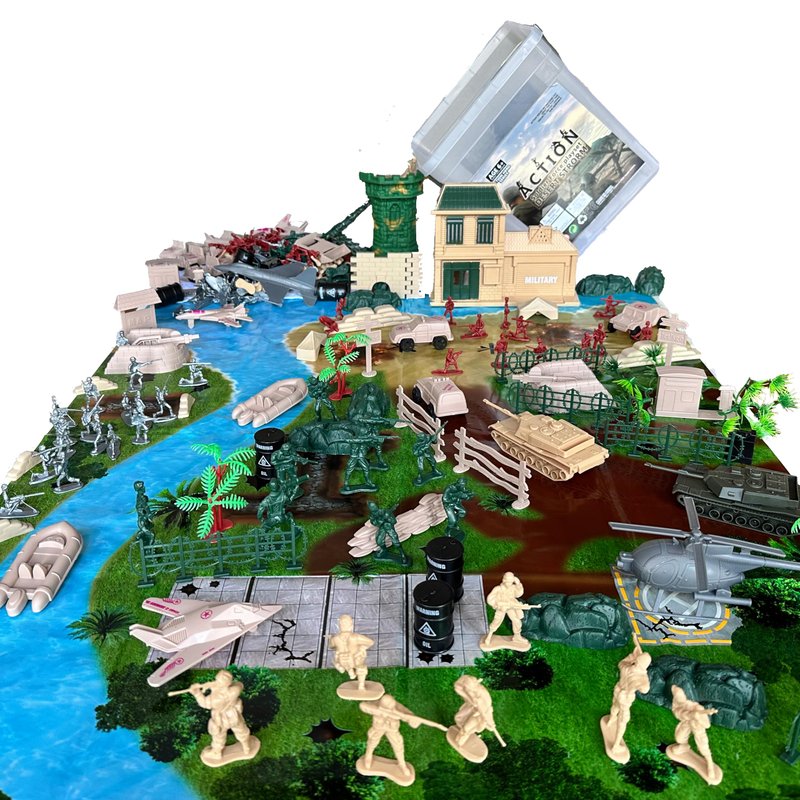 Unleash boundless imagination and embark on thrilling adventures with our Super Value Pack Toy Soldier Set. Designed as the ultimate gift for young tacticians, this set is carefully curated to ignite creativity and nurture strategic thinking. Complete Military Equipment: Immerse yourself in a world of military precision and excitement. Our set boasts an impressive array of action figures and military equipment. From skilled soldier figures, including commanders and combatants, to a diverse fleet of battlefield machinery, including tanks, helicopters, jeeps, ambulances, and trucks, we've left no detail untouched. Quality You Can Rely On: Each soldier in this set is meticulously crafted with astonishingly realistic features that will captivate your child's imagination. They are engineered to withstand the most high-stakes missions and epic battles your little one can dream up, ensuring hours of durable playtime. Various Gameplay Adventures: This is not just a toy; it's an invitation to a world of fun-filled afternoons and countless tales of heroism. Watch in awe as your child strategizes grand plans and orchestrates heroic battles across the living room battlefield. With dual-sized soldiers and a vibrant battlefield mat, the possibilities are endless. The Perfect Gift: Our Toy Soldier Set hits the mark for birthdays, classroom prizes, Halloween, Christmas, or Thanksgiving gifts. It’s also an excellent choice as a reward or prize box filler and makes for a fantastic goodie bag stuffer. Celebrate the joy of play, creativity, and strategic thinking with this incredible toy soldier set.