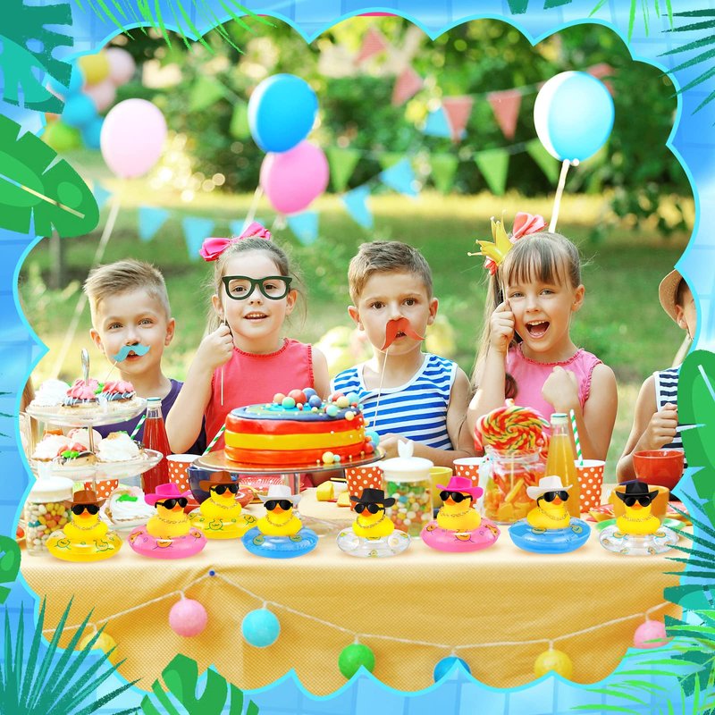 - Funny Duck Decorations: you will receive 24 pieces of funny rubber ducks, each measuring about 2.17 x 1.77 inches/ 5.5 x 4.5 cm, equipped with a mini rose cowboy hat, swim circle, necklace and sunglasses; The ducks have interesting shapes and are suitable for decorating cars, offices, bedrooms and desks to add some fun and relieve your stress
