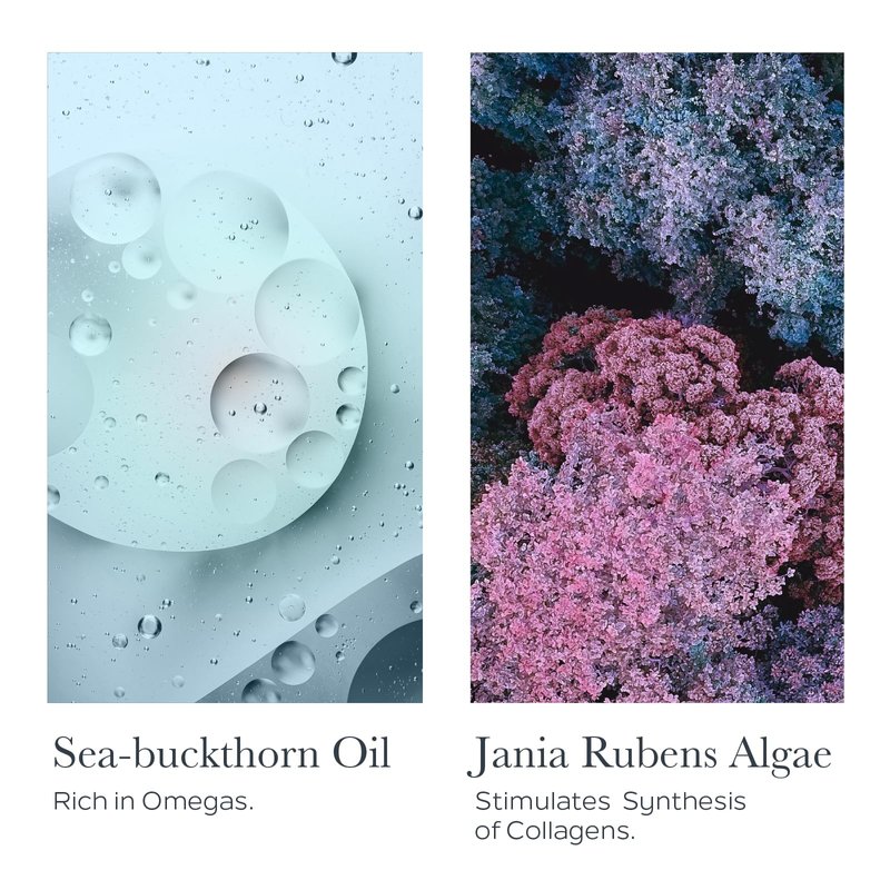 OVERNIGHT SKIN REJUVENATION POWER. Night after night, this cream with a relaxing fragrance visibly renews your skin’s youth. Its core formula contains the cosmetic anti-ageing power, boosted by double collagen and an AHA complex + organic blackcurrant buds to revive the complexion. After a day subjected to aggression, the skin is visibly regenerated and benefits from the repairing power of the night to reveal visibly renewed skin, which appears rested and younger in the morning. The science behind the cream with 3 key actions and the latest generation and highly effective active ingredients REGENERATE: Sea-buckthorn oil and Jania rubens algae RESTRUCTURE: Jania rubens algae RENEW: AHA and ORGANIC blackcurrant buds