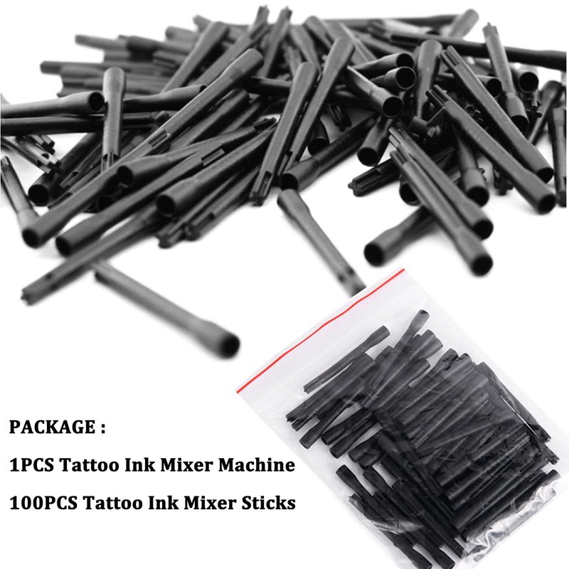 SOTICA 100Pcs Tattoo Ink Mixer Machine Kit - Tattoo Ink Mixer with 100PCS Mixing Sticks Set Pigment Agitator Ink Mixer Sticks for Tattoo Accessories Tattoo Supplies