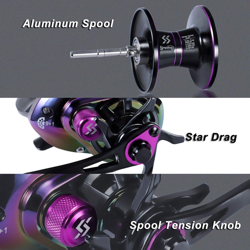 - BUILT FOR PERFORMANCE AND ENDURANCE - Sougayilang Panther DG baitcasting fishing reel have 9 + 1 double shielded stainless steel bearings, an instant anti-reverse system, powerful precision matched brass gears, brass main shaft, nickel-plated brass worm shaft, stainless steel hardware, a sweet spot 8.0:1 gear ratio for quick line pick up, smooth ceramic line guide.