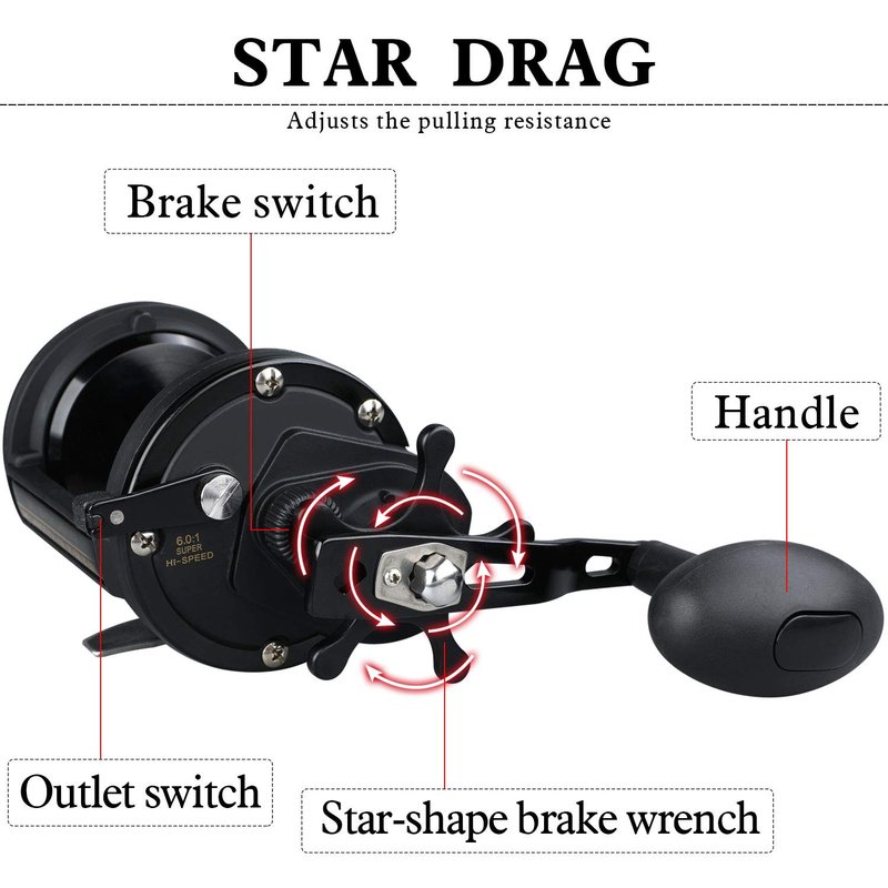 Sougayilang Conventional Reel 30 Trolling Fishing Reel Powerful Drag Fishing Reel for Saltwater Big Game(HSTL Black 30)