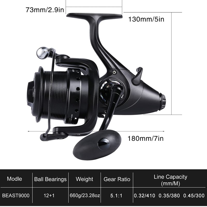 Sougayilang Spinning Fishing Reel 12+1BB Metal Body Smooth Carp Spinning Reels for Saltwater Freshwater Fishing-BE9000