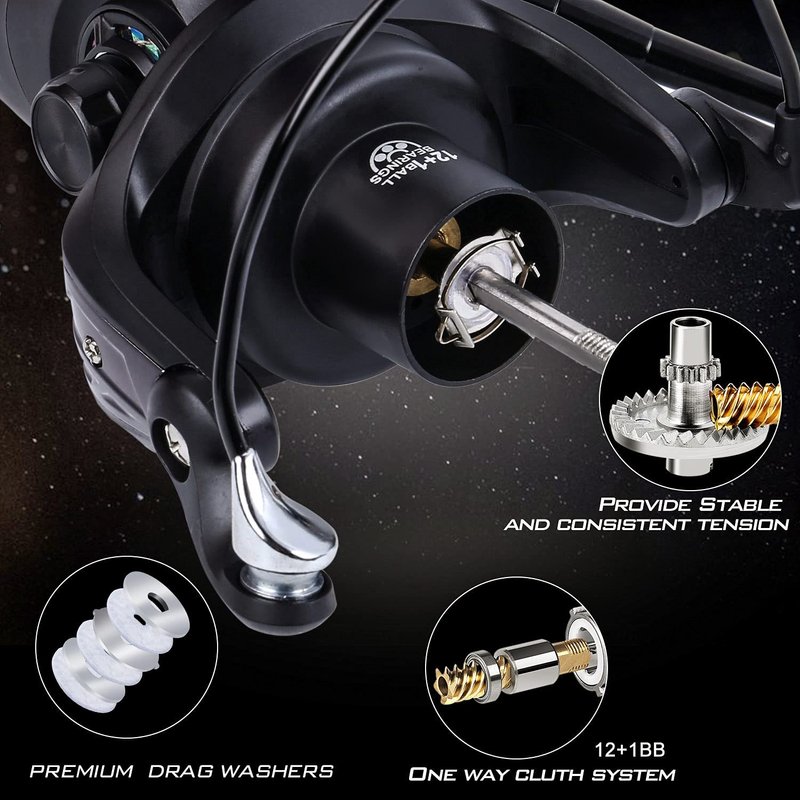 - POWERFUL -Sougayilang Baitfeeder Fishing Reels has 12 + 1 Corrosion Resistant Smooth Ball Bearings, Precision Matched Gears and a Powerful 5.1:1 Gear Ratio.Give It Ultra-smooth Performance.This Baitfeeder Spinning Reels Drag Washers for Up to 22 Lbs/ 10 Kg of the Smoothest Fishing Reel Carbon Drag on the Fishing Tackle Market.Get The 5000/6000 Spinning Reels and Get Ready for a Fight!