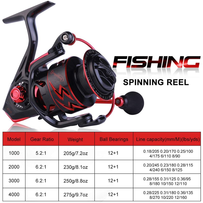- Smooth Performance:12 high-quality ball bearings and an instant stop unidirectional anti-reverse bearing make it have super smooth performance.The Sougayilang spinning reel features a lightning fast 6.2:1 gear ratio as well as a buttery smooth,the high speed retrieve helps every angler battle the strong, fast runs of the biggest fish and the moderate speed is perfect for finessing in your next trophy.