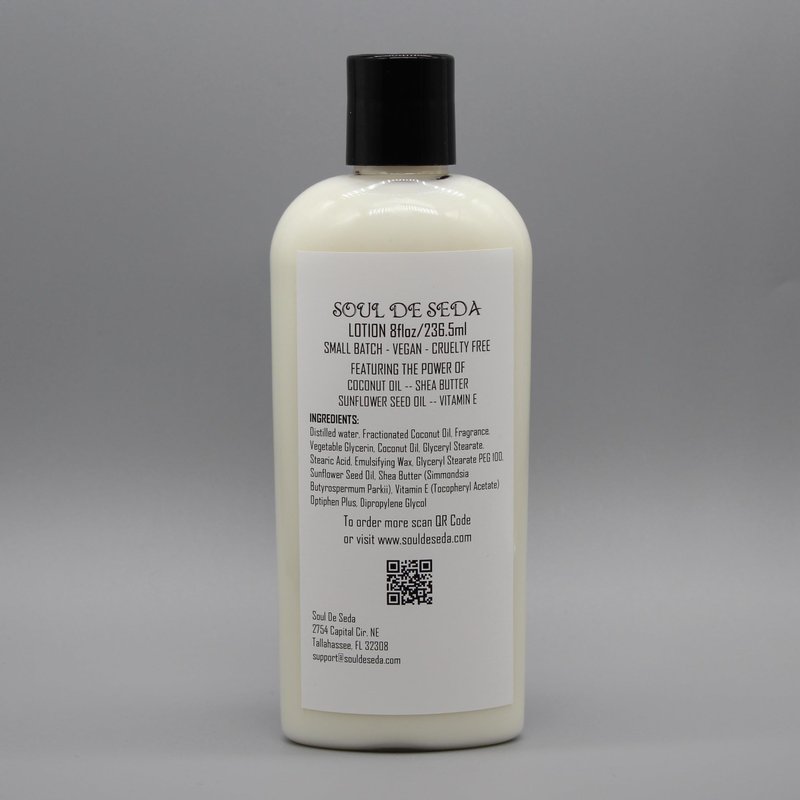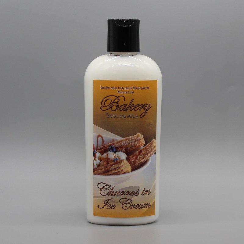 Notes of cinnamon, sugar, vanilla and cream meld together to create the aroma of dipping crunchy and soft churros in vanilla ice cream. Be the dessert. 8FLOZ Our lotion contains NO Petrochemicals, NO Silicones, NO Parabens and NO Formaldehyde INGREDIENTS: Distilled water, Fractionated Coconut Oil (Capric/Caprillic Triglicerides), Vegetable Glycerin, Coconut Oil, Glyceryl Stearate & PEG 100, Stearic Acid, Emulsifying Wax Glyceryl Stearate, Simmondsia Butyrospermum Parkii (shea butter), Sunflower Seed Oil, Vitamin E, Optiphen Plus, Dipropylene Glycol