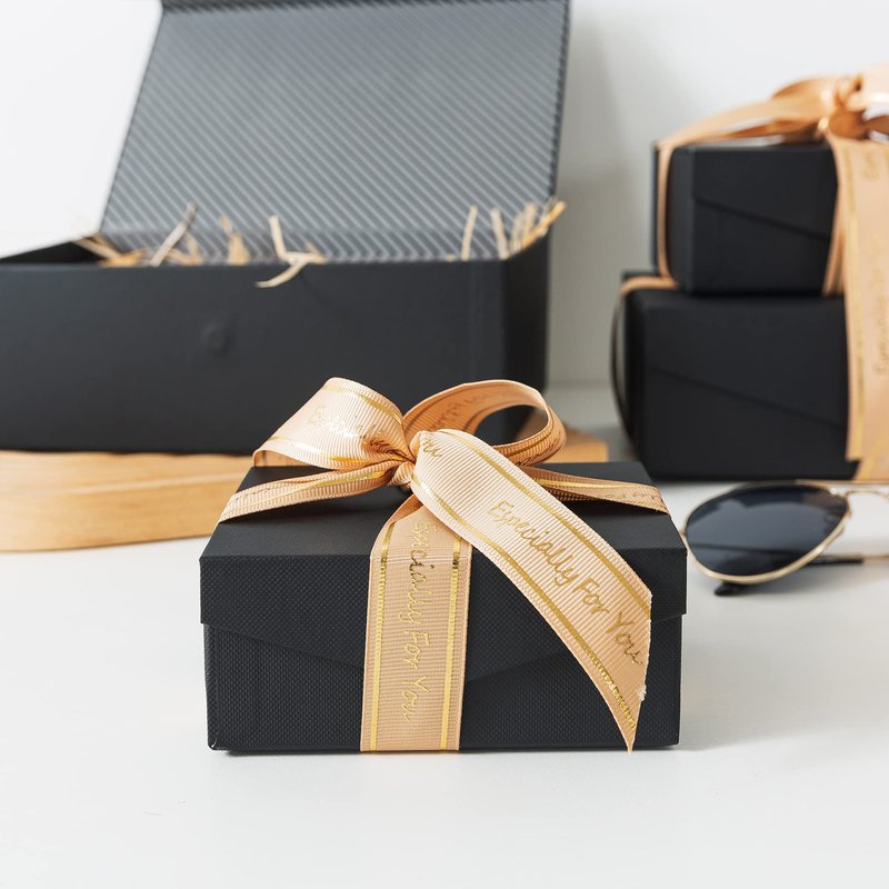 Crafted from premium paperboard, these black gift boxes are engineered for durability and robustness, making them a lasting companion for your gifting and storage needs. Gift your loved ones in these exquisite boxes, which they'll undoubtedly treasure and repurpose as a decorative accent or a storage solution.