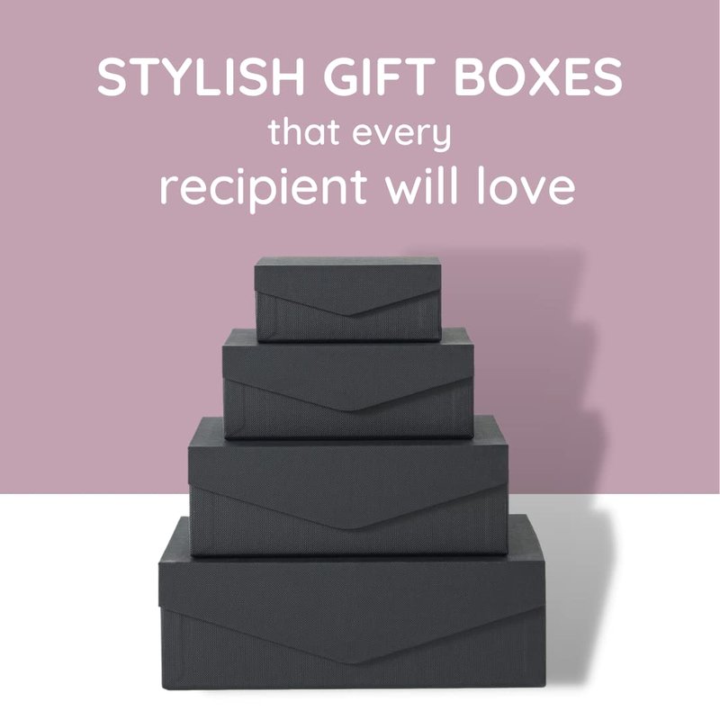 - ELEGANT DECORATIVE BOXES DESIGNED TO IMPRESS: These stylish gift boxes with lids for presents are an easy way to give your gifts the beautiful and upscale presentation they deserve. With our black gift boxes, there is no need to look for wrapping paper, ribbon, or tape!