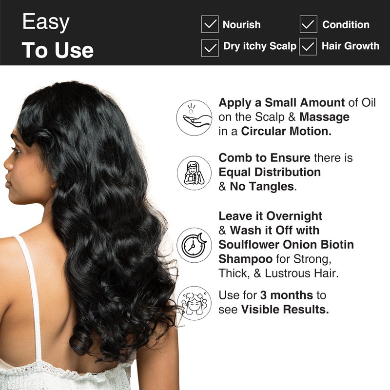 - EASY TO USE: Take a small amount of Soulflower Cold Pressed Castor Rosemary Hair Nourishment Oil and massage directly on your scalp and hair, apply some on the length as well. Mix 4-5 drops of any Soulflower Essential Oil with 1 tbsp of Castor Rosemary Hair Nourishment Oil & apply for additional benefits. Keep it for a minimum of 30 minutes or overnight and wash it off with Soulflower Onion Biotin Shampoo.