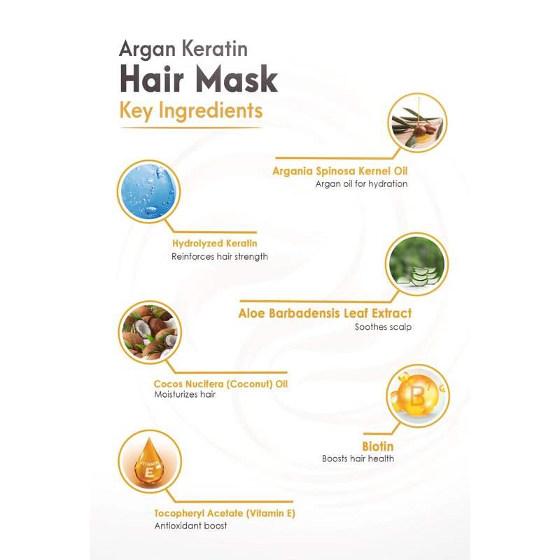 - Revitalizes Dry & Damaged Hair: Restore and rejuvenate dry, damaged hair with our Keratin Hair Mask. Enriched with Argan Oil and Keratin, it replenishes moisture and restores strength, leaving your hair silky and healthy-looking.