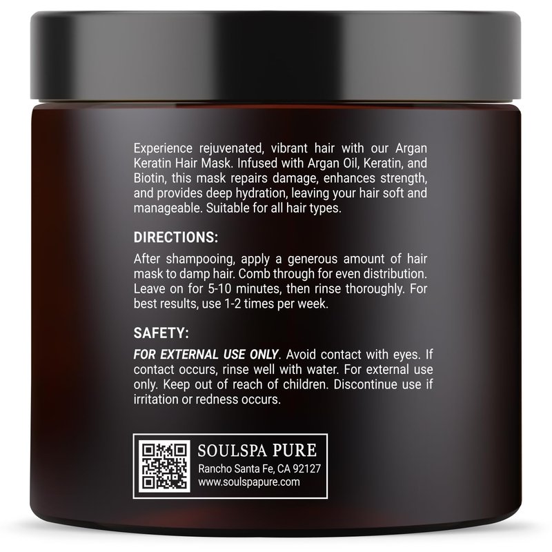- Intensive Hair Repair: Our Argan Keratin Hair Mask revitalizes and repairs damaged hair, providing intensive care for dry and damaged locks.