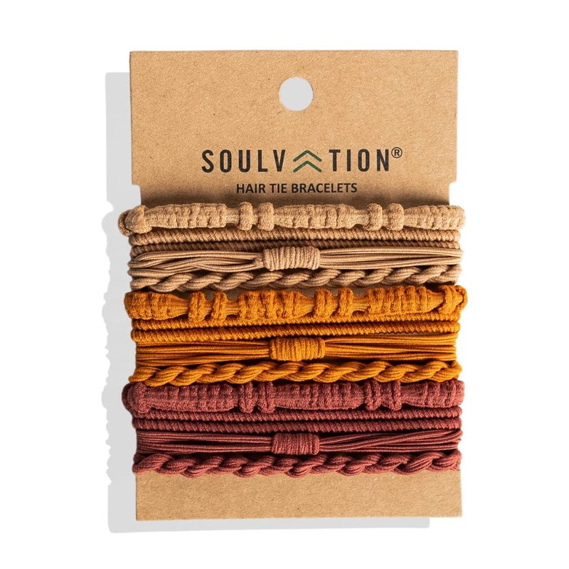 Soulvation Boho Hair Tie Bracelets for Women, Elastic, Hair Bands for Ponytails, Thin Hair, Black, Good Hair ElasticDual Use Bracelet AND Hair Tie, Prevents Hair Breakage (Sahara)