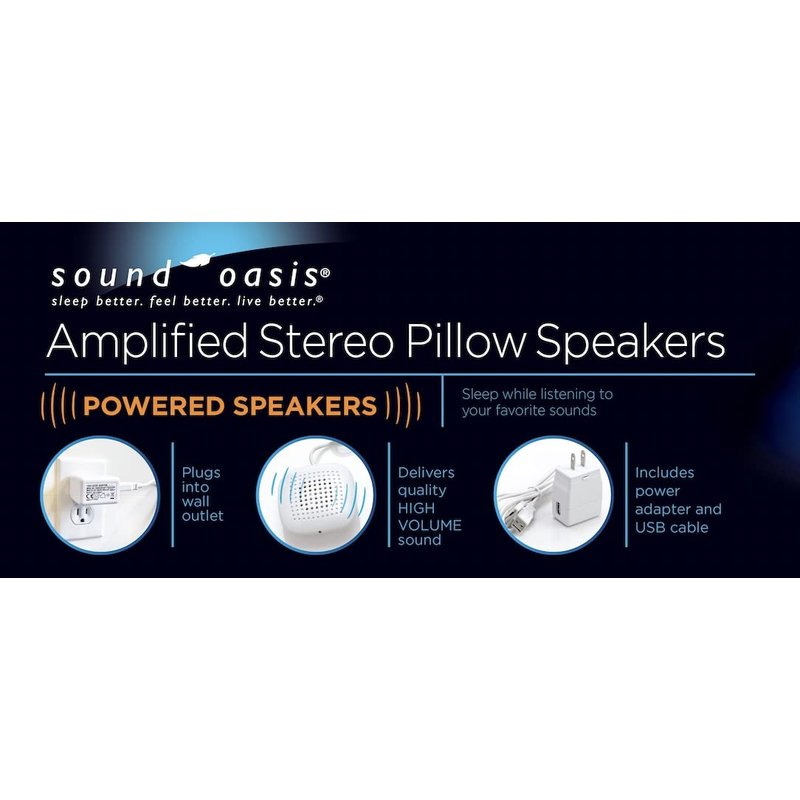 Sound Oasis Amplified Pillow Speakers, 2 Ultra-Thin Hi-Fi Stereo Speakers, Volume Control, Surround Sound for Music, Sleep, Tinnitus Masking, Connects to External Sound Source.