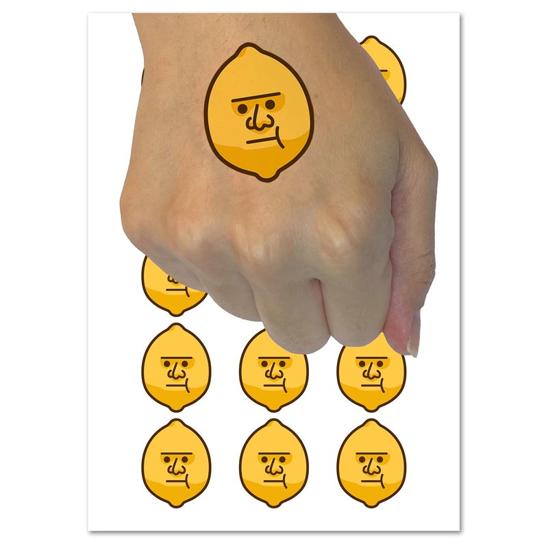 Sour Lemon Head Face Funny Temporary Tattoo Water Resistant Fake Body Art Set Collection - 54 1" Tattoos (1 Sheet)