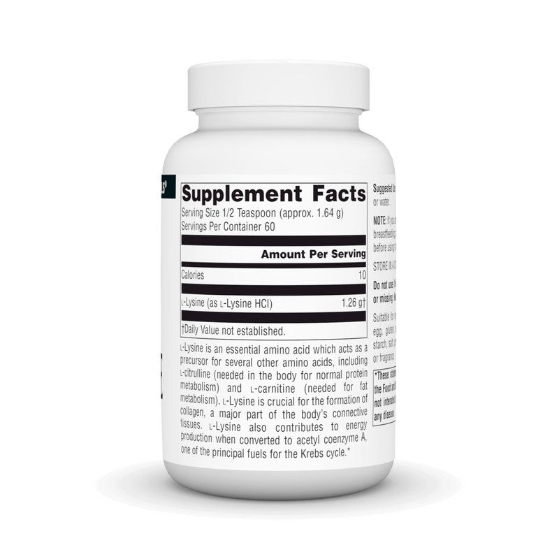 Source Naturals L-Lysine Free Form Powder -Amino Acid Supplement Supports Energy Formation & Collagen* - 100 Grams