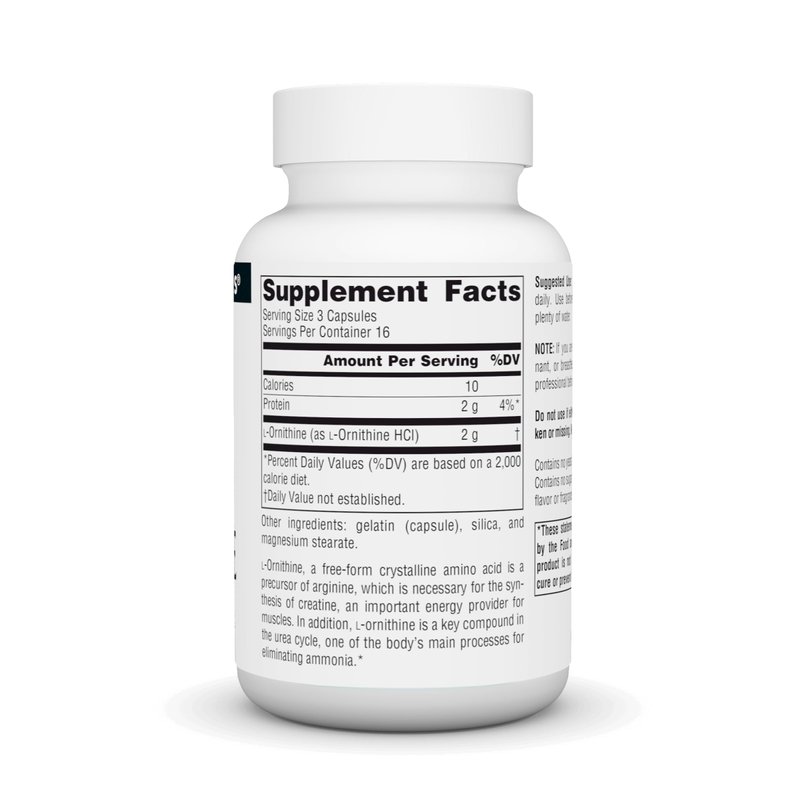 - MUSCLE SUPPORT. L-Ornithine, a free-form crystalline amino acid, is a precursor of arginine, which is necessary for the synthesis of creatine, an important energy provider for muscles. In addition, L-ornithine is a key compound in the urea cycle, one of the body's main processes for eliminating ammonia.*