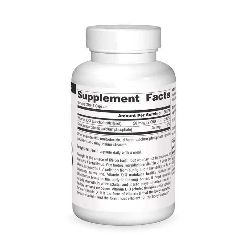Source Naturals Vitamin D-3 2000 iu Supports Bone & Immune Health - 100 Capsules
