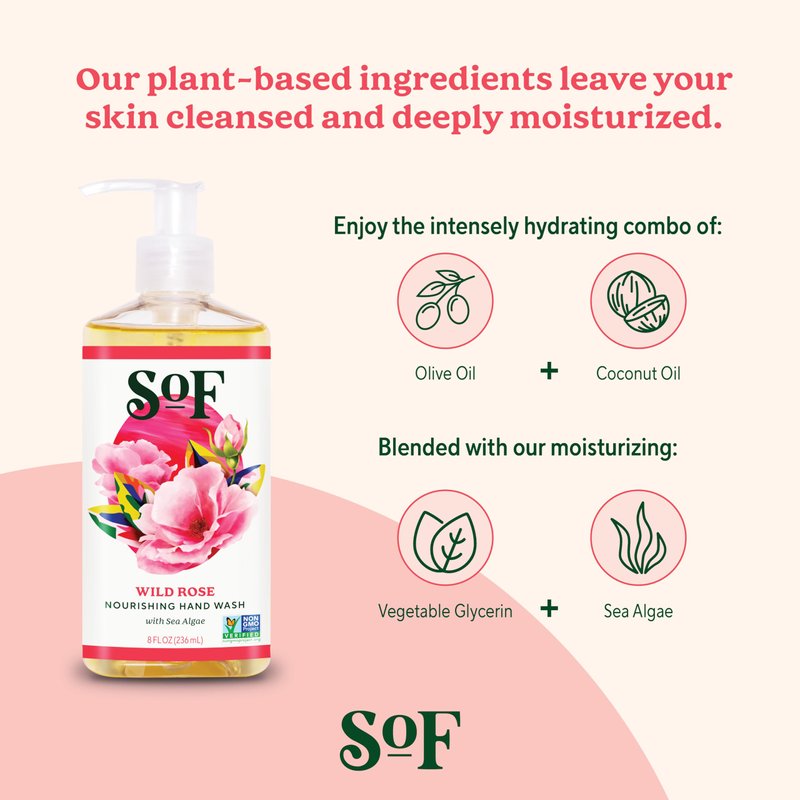 - NATURAL HAND WASH Made from NON-GMO natural ingredients, our Hand Wash is free of harsh chemicals and gentle on the skin. With the new addition of Mediterranean Sea Algae, we’ve found the conditioning benefits to be immense. We are thrilled to enhance our pampering hand washes with this new ingredient and know that our customers will find these benefits superior as well!