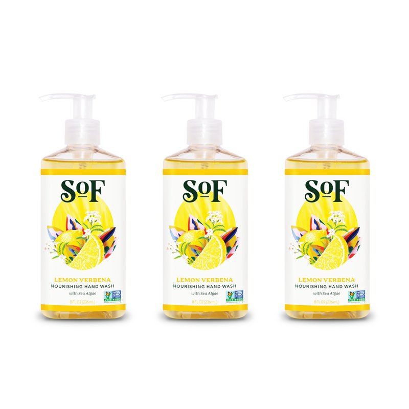 South Of France Lemon Verbena Liquid Hand Wash by SoF Body Care (Formerly Body Care) | Moisturizing Liquid Hand Soap with Sea Algae | 8 oz Pump Bottle Each | 3 Bottles