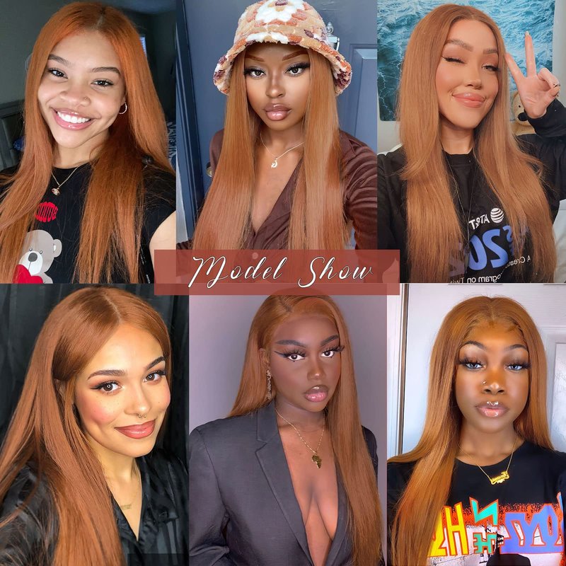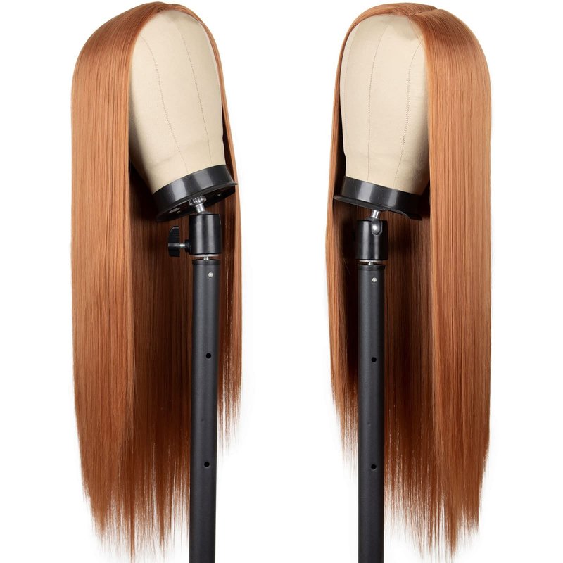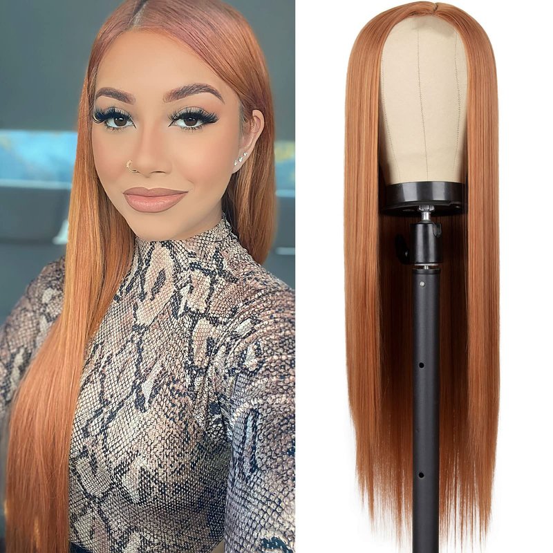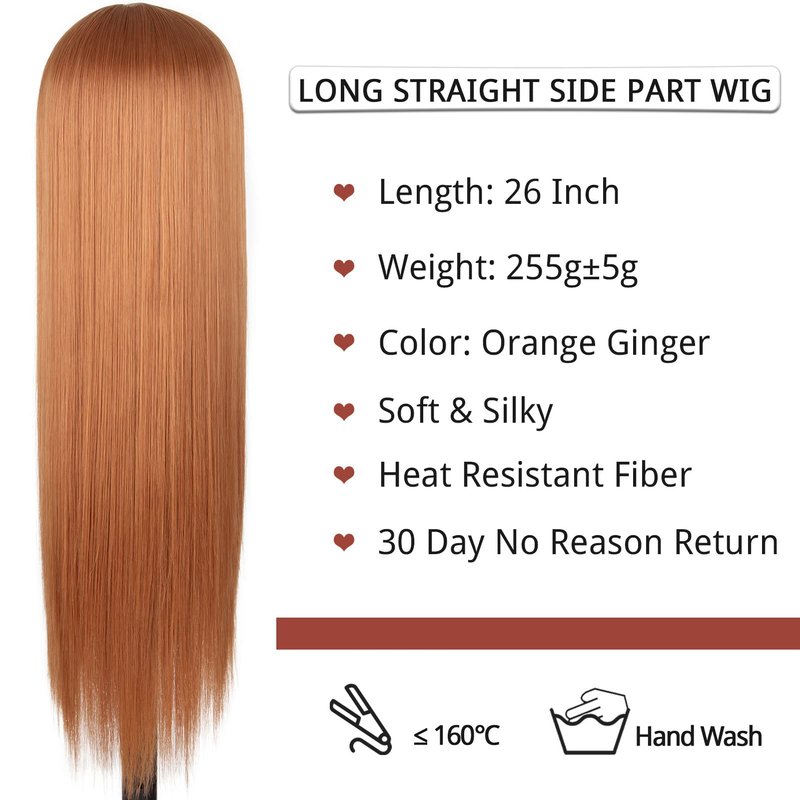 - [Wig Type]: Orange ginger wigs for women is full machine made side parting wig, An attractive ginger color, about 26 inches, with a small piece of lace in the side part.you can add some foundation or concealer in the crevices according to your skin tone to get a more natural and realistic look. long straight synthetic wig is your best choice for hairstyle, costume event, Halloween or any other occasion.