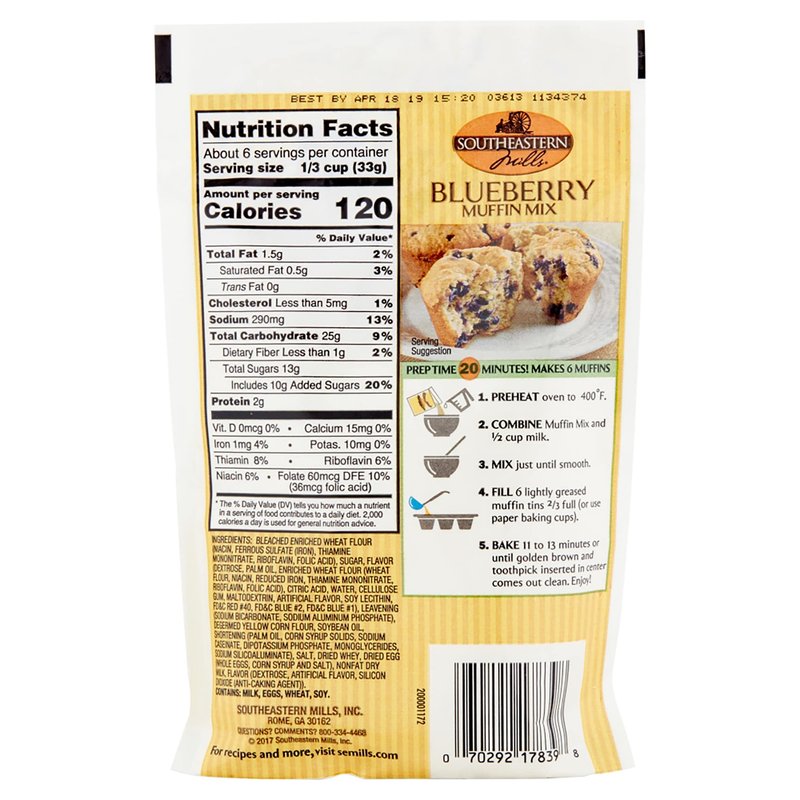 - Southeastern Mills Easy To Make Blueberry Muffin Mix in a 7 oz. Packet