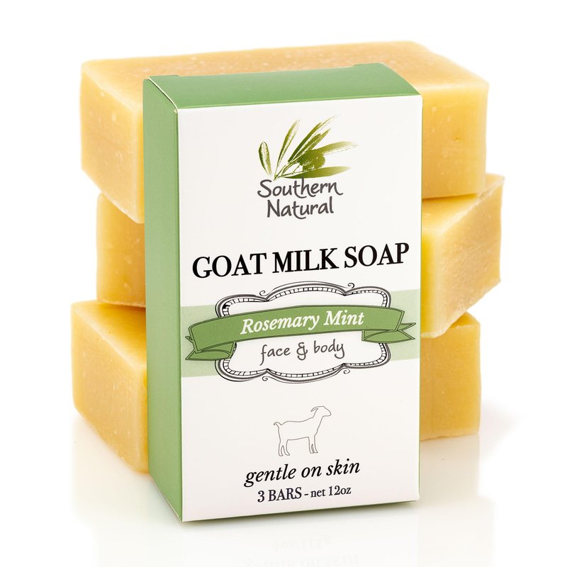 Southern Natural Goat Milk Soap Bar - 3 Pack Rosemary Mint - For Eczema, Psoriasis & Dry Sensitive Skin. Natural Soap For Men, Women, Kids & Baby. Great For Face & Body. Handmade In USA.