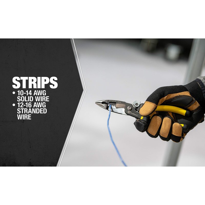 - STRIPS: easily strips 10-14 gauge solid wire or 12-16 gauge stranded wire