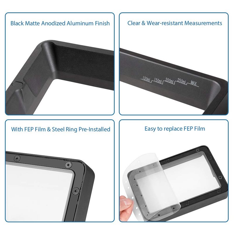 Sovol 3D Printer Resin Vat Anodized Aluminium with FEP Film & Steel Ring Preinstalled, Durable Metal Frame Resin Tank with Double Silicone Covers Fits for Mars 2 pro Photon Mono 4K 3D Printer
