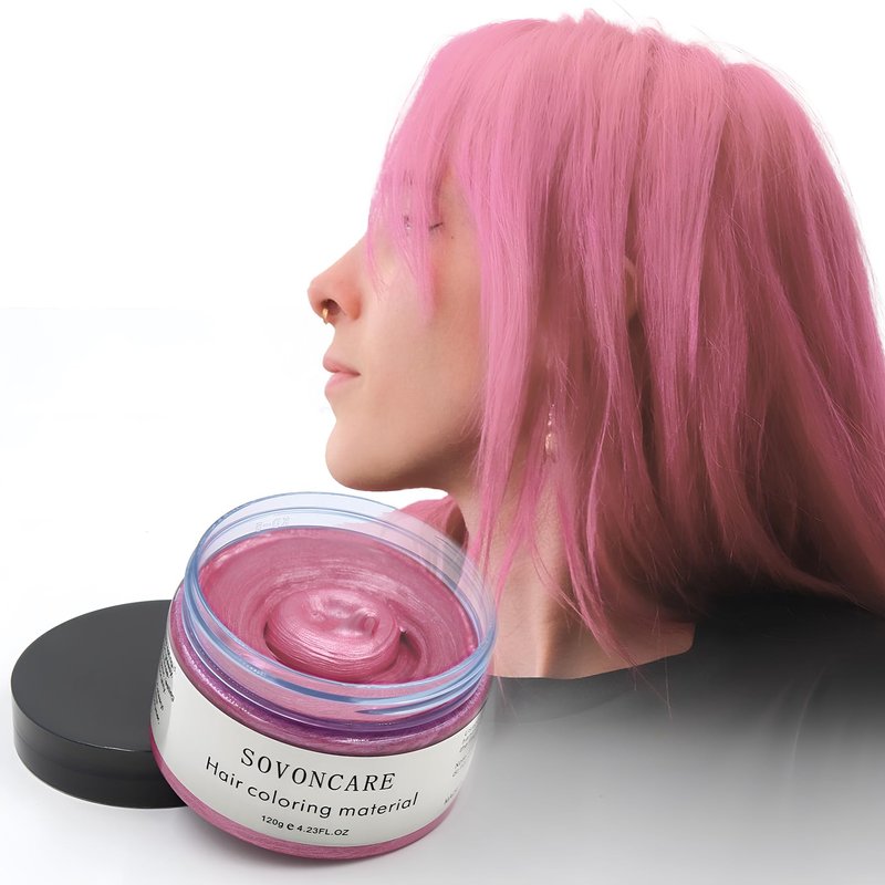 SOVONCARE Pink Hair Styling Wax, Temporary Hair Color Cream for DIY Hairstyle, Cosplay, Halloween, Date - 4.23 oz