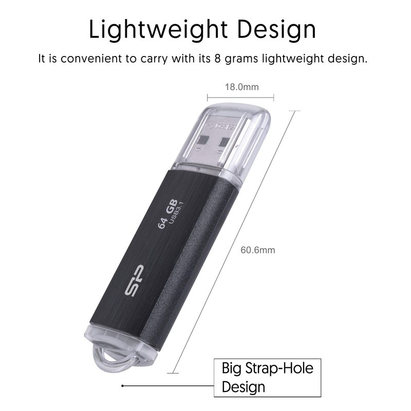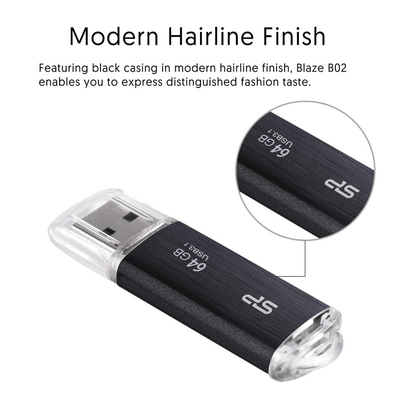 SP Silicon Power 64GB USB 3.1 & USB3.0 Hairline Finish Blaze B02 SP064GBUF3B02V1K